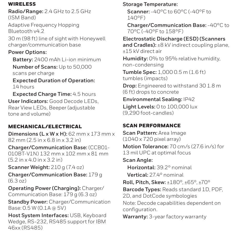Sử dụng Bluetooth Class 2 v2.1, Honeywell 1472G cho phép di chuyển tự do trong phạm vi 30m, tùy môi trường sử dụng.
