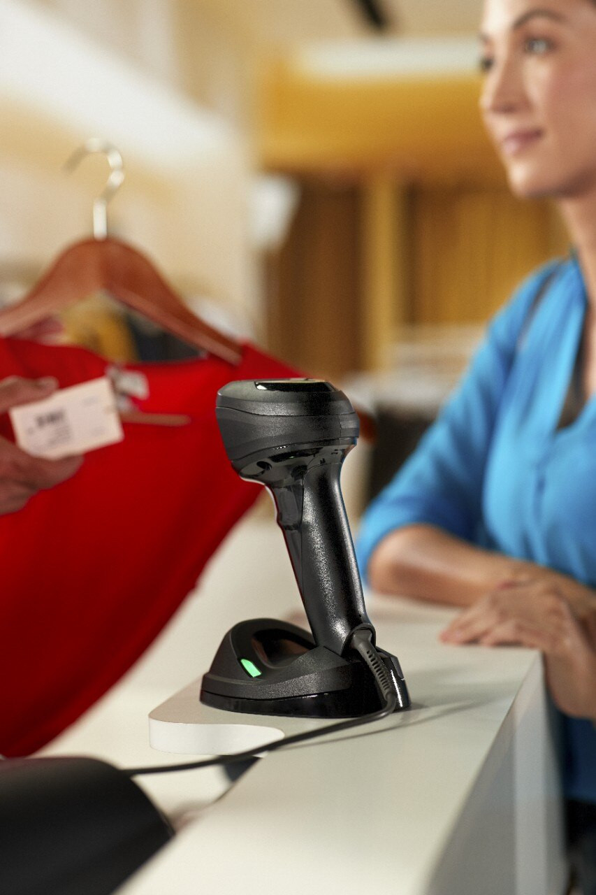 - Tự động nhận biết chế độ quét: Khi người dùng cầm lên, máy tự kích hoạt chế độ handheld; khi đặt xuống, tự chuyển sang rảnh tay (hands-free), giúp nhân viên thanh toán, đóng gói hoặc kiểm hàng nhanh hơn, giảm thao tác dư thừa.