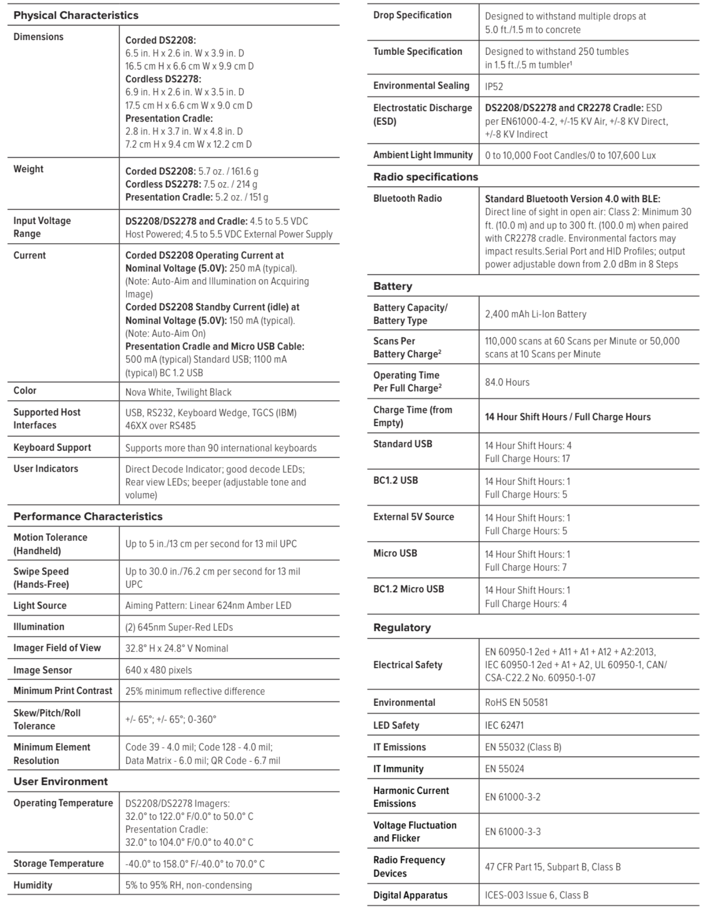 Thông số kỹ thuật Máy quét mã vạch Zebra DS2208