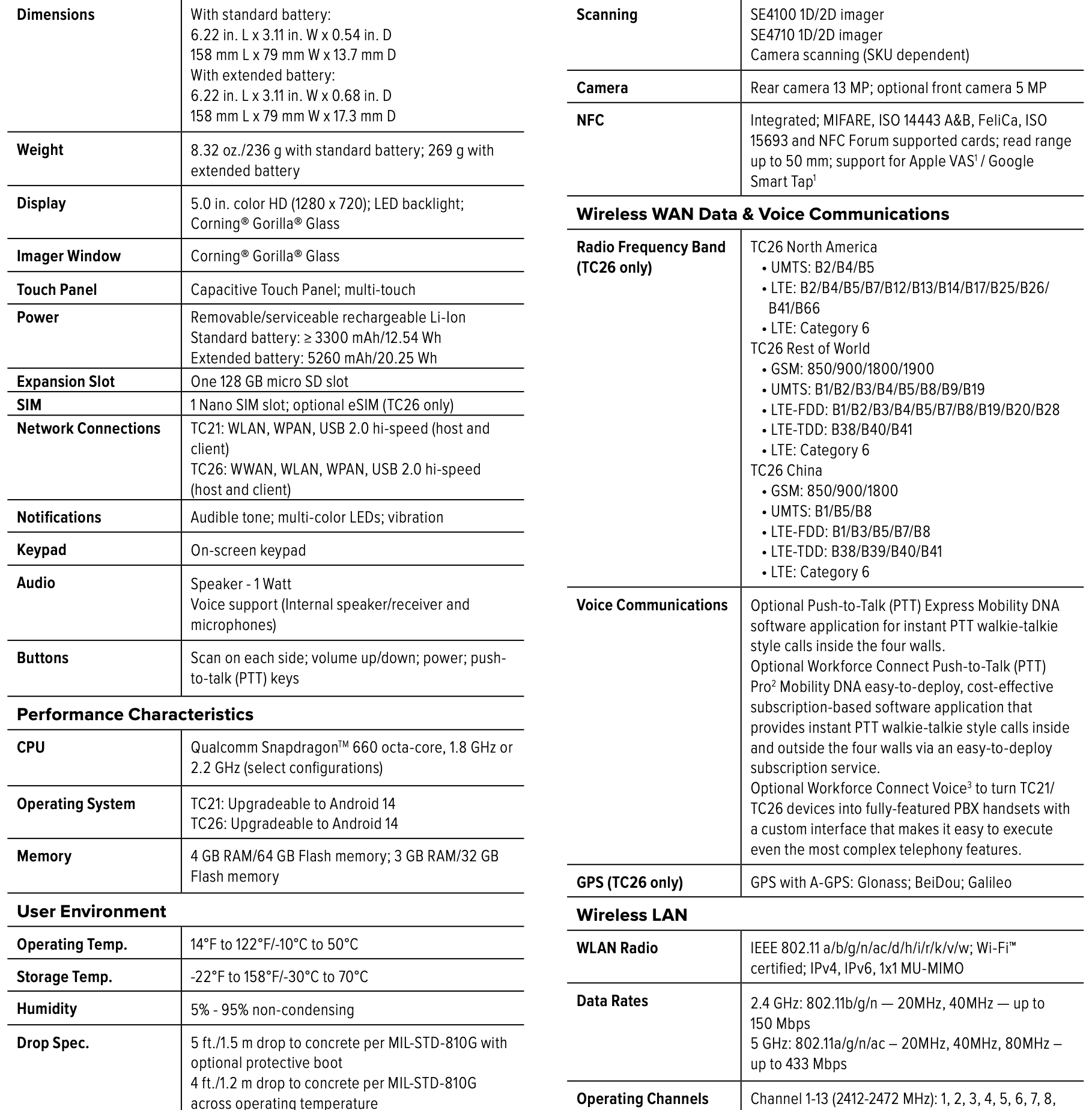 Thông số kỹ thuật nổi bật Máy kiểm kho Zebra TC21